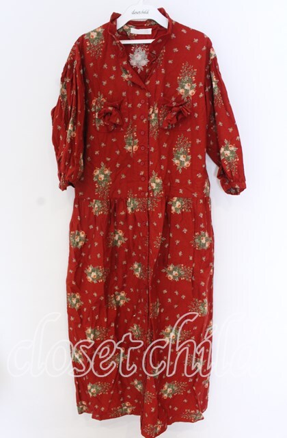 PINK HOUSE / ローズブーケ柄ワンピース アカ O-25-10-29-084-LO-OP-IG-OS