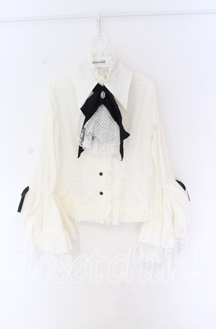 MARBLE / デコラティブタイ付き姫袖ブラウス ホワイト×ブラック O-25-10-29-067-GO-BL-OW-OS [2100080000062690-O-25-10-29-067-GO-BL-OW-OS]