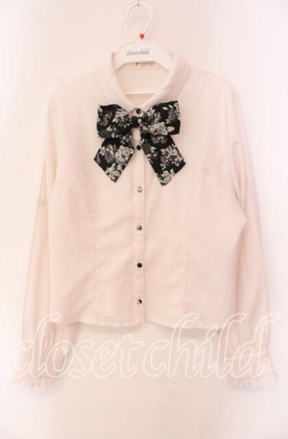axes femme / ジャカードリボン付ブラウス オフ×クロ O-25-10-30-058-AX-BL-IG-OS