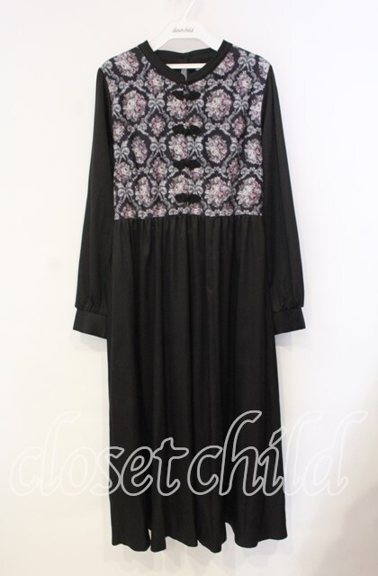 axes femme / チャイナ釦薔薇柄切替ワンピース クロ O-25-10-30-061-AX-OP-IG-OS
