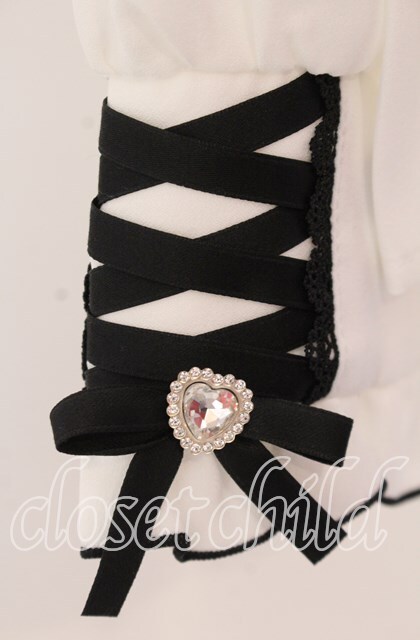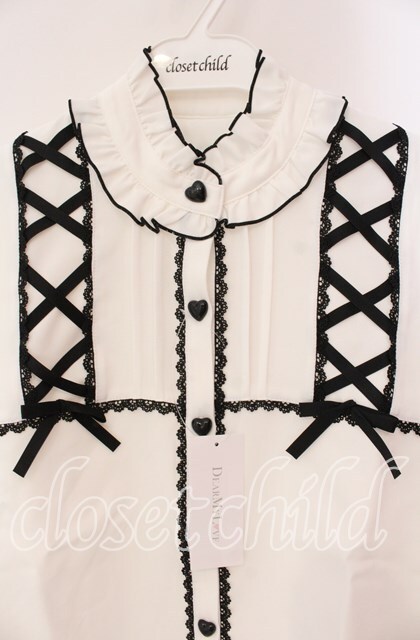 DearMyLove / レースアップフリル襟ブラウス L シロ×クロ O-25-10-30-052-EL-BL-OW-OS