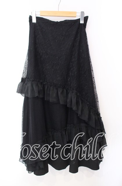h.naoto Blood / チャーチptレースレイヤードスカート ブラック O-25-10-30-033-HN-SK-OW-OS