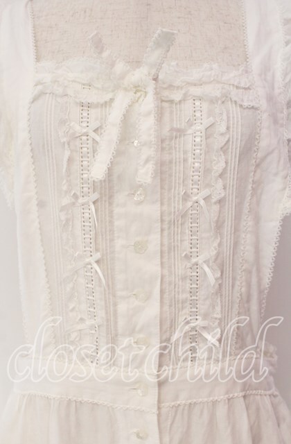 PINK HOUSE / フランス製レース使いエプロンドレス シロ O-25-10-30-008-LO-OP-OW-OS
