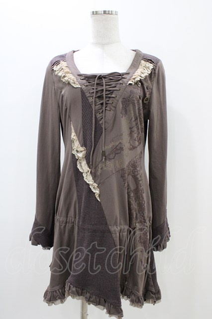 OZZ ANGELO / 異素材切替チュニック ブラウン H-25-11-06-1042-OO-TO-KB-ZH