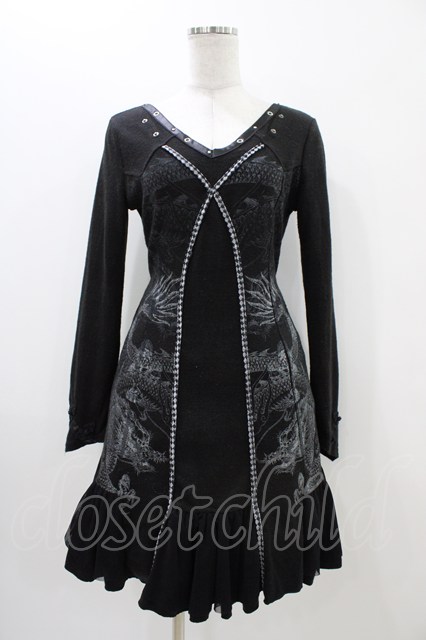 Ozz Croce / 龍プリントニットソーワンピース 黒 H-25-11-06-1024-OO-OP-KB-ZH [2100030000076736-H-25-11-06-1024-OO-OP-KB-ZH]