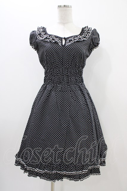MILK / ドットシャーリングフリルワンピース 黒 H-25-11-06-1023-ML-OP-KB-ZH