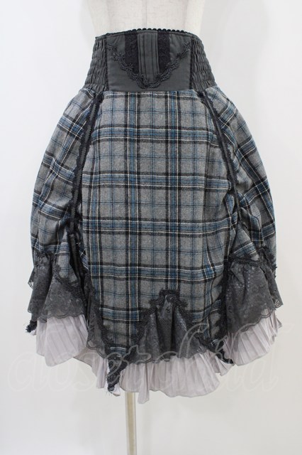 Ozz Croce / プリーツフリルチェックスカート グレー H-25-11-06-1037-OO-SK-KB-ZH