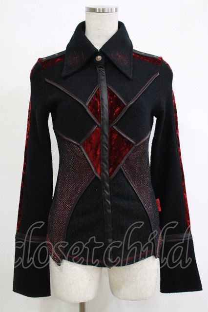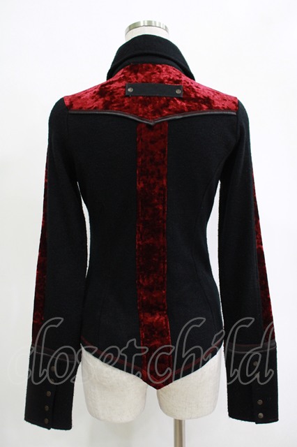 Ozz On / 異素材切替ニットソーシャツ 黒×赤 H-25-11-07-065-OO-BL-KB-ZH [2100030000076871-H-25-11-07-065-OO-BL-KB-ZH]