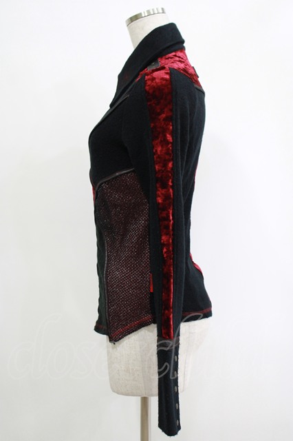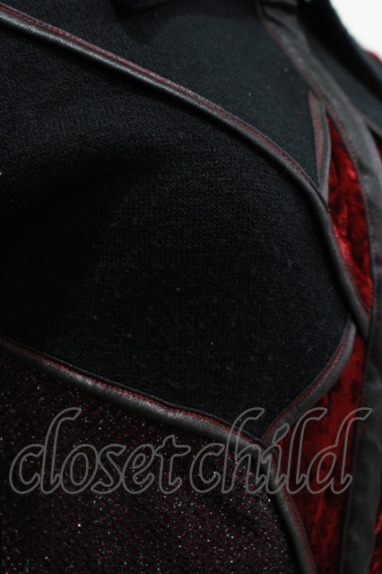 Ozz On / 異素材切替ニットソーシャツ 黒×赤 H-25-11-07-065-OO-BL-KB-ZH