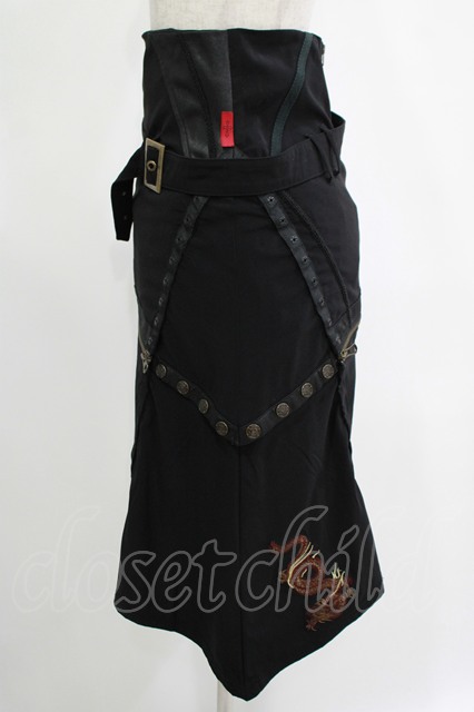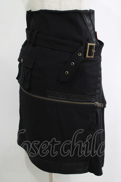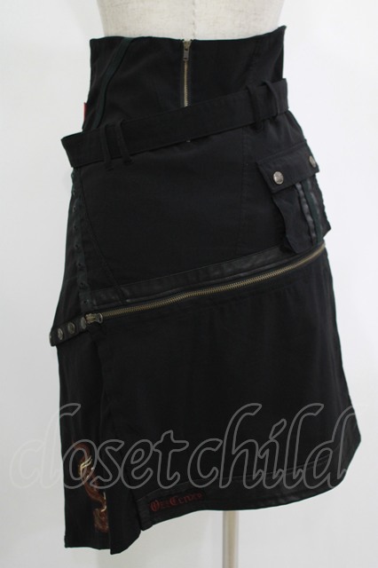 Ozz Croce / 異素材切替アシメスカート 黒 H-25-11-07-019-OO-SK-KB-ZH [2100030000076865-H-25-11-07-019-OO-SK-KB-ZH]