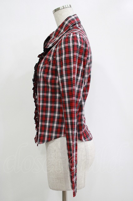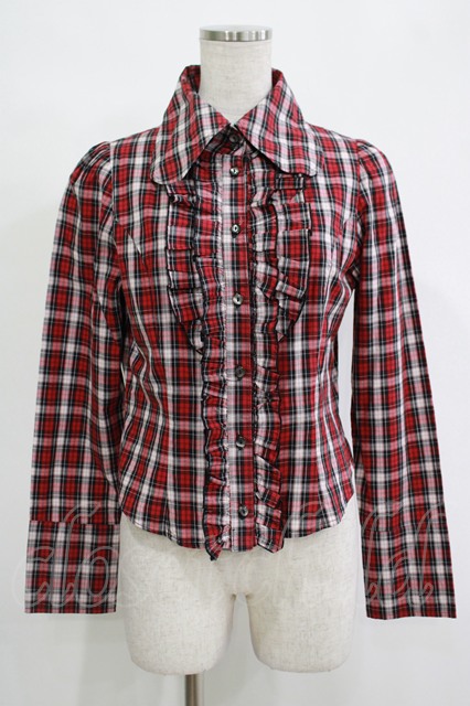 PEACE NOW / チェックフリルブラウス 赤 H-25-11-07-049-PU-BL-KB-ZH