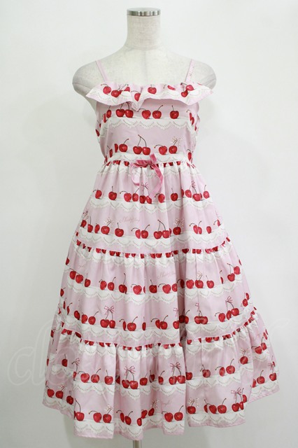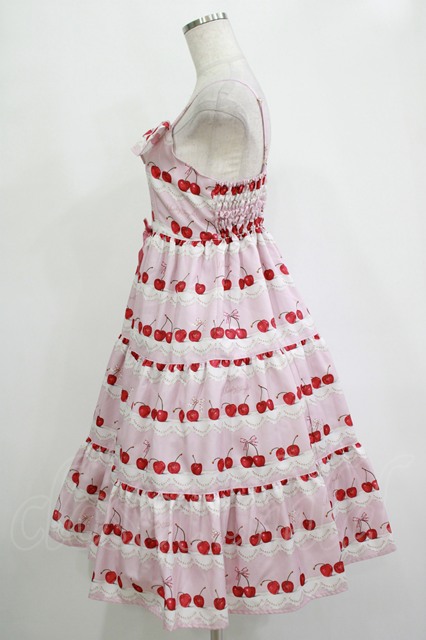 Shirley Temple / チェリースカラップレースプリントジャンパースカート ピンク H-25-11-07-006-ET-OP-KB-ZH
