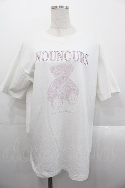 merry jenny / bear embroidery Tシャツ 白Xピンク I-25-10-29-007-LO-TO-SA-ZI