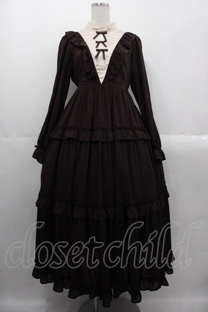 axes femme kawaii / クラシカルフリルロングワンピ ブラウン I-25-10-29-032-AX-OP-SA-ZI