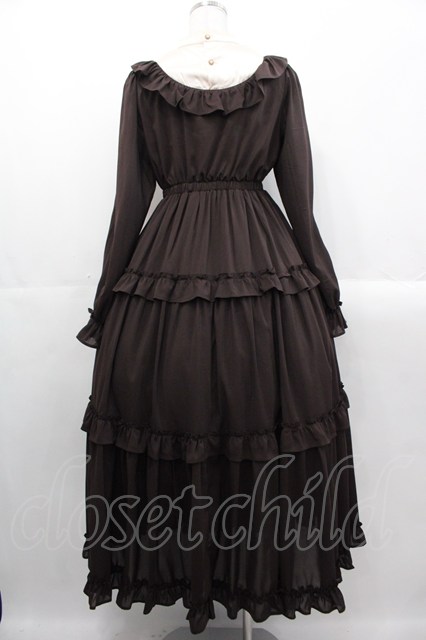 axes femme kawaii / クラシカルフリルロングワンピ ブラウン I-25-10-29-032-AX-OP-SA-ZI [2100060000043362-I-25-10-29-032-AX-OP-SA-ZI]