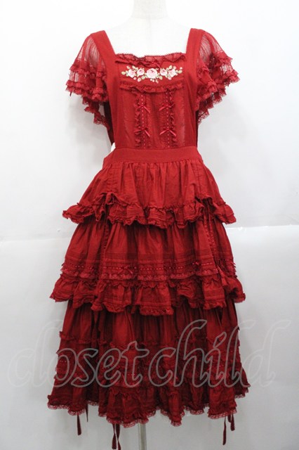 PINK HOUSE / ローズ刺繍使いタブリエドレス 赤 I-25-10-29-070-LO-OP-SA-ZI