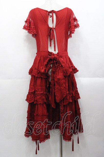 PINK HOUSE / ローズ刺繍使いタブリエドレス 赤 I-25-10-29-070-LO-OP-SA-ZI [2100060000044065-I-25-10-29-070-LO-OP-SA-ZI]