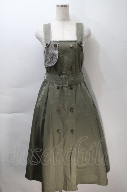 axes femme / ベルト付きミリタリージャンパースカート カーキ S-25-10-30-048-AX-OP-HR-ZS