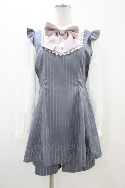 Ank Rouge / Bigリボンストライプコンビネゾン M グレー H-25-11-07-1042-CA-OP-NS-ZH [2100030000063971-H-25-11-07-1042-CA-OP-NS-ZH]
