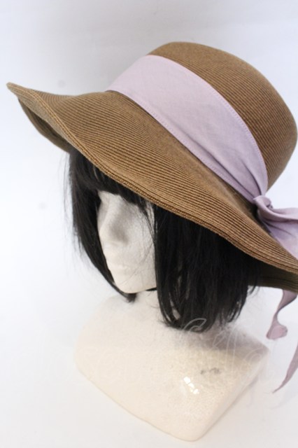 an another angelus / リボン配色ハット ベージュ×ラベンダー O-25-10-31-2057-CA-AC-OW-OS [2100080000062915-O-25-10-31-2057-CA-AC-OW-OS]