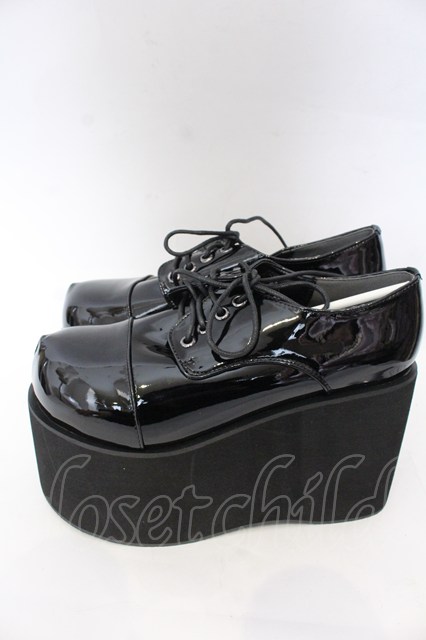 DearMyLove / 11cm厚底レースアップおでこパンプス 25.5cm ブラックエナメル O-25-10-31-2074-EL-SH-OW-OS [2100080000063003-O-25-10-31-2074-EL-SH-OW-OS]