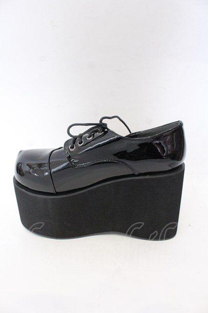 DearMyLove / 11cm厚底レースアップおでこパンプス 25.5cm ブラックエナメル O-25-10-31-2074-EL-SH-OW-OS