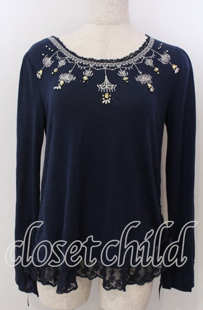 axes femme / シャンデリア刺繍カットソー M ネイビー O-25-10-30-1085-AX-TO-IG-OS [2100080000063206-O-25-10-30-1085-AX-TO-IG-OS]