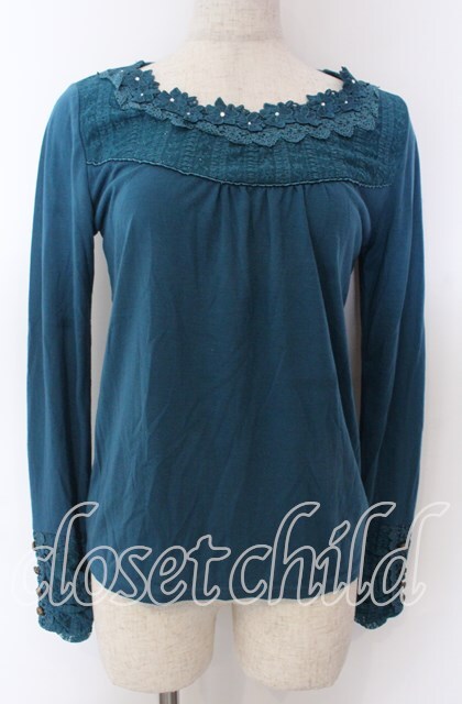 axes femme / フラワーレースカットソー M ターコイズ O-25-10-30-1078-AX-TO-IG-OS
