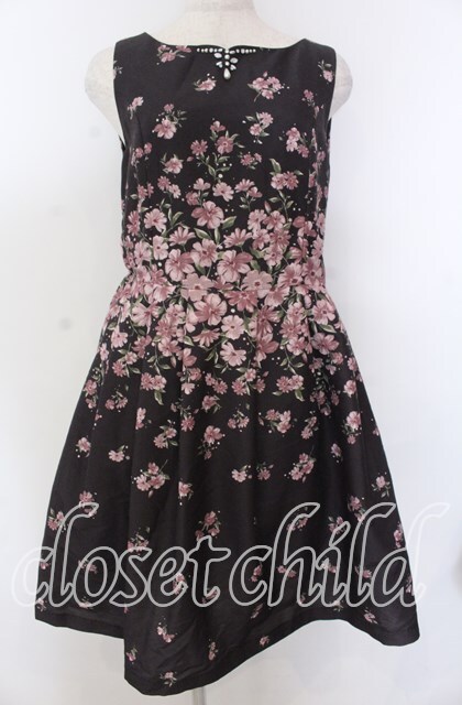 axes femme / 花柄グログランワンピース M クロ O-25-10-30-1063-AX-OP-IG-OS