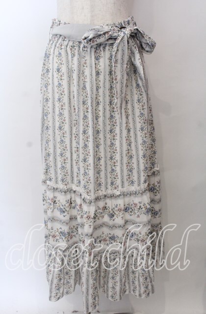 axes femme / ストライプフラワー柄スカート アイボリー O-25-10-30-1113-AX-SK-IG-OS