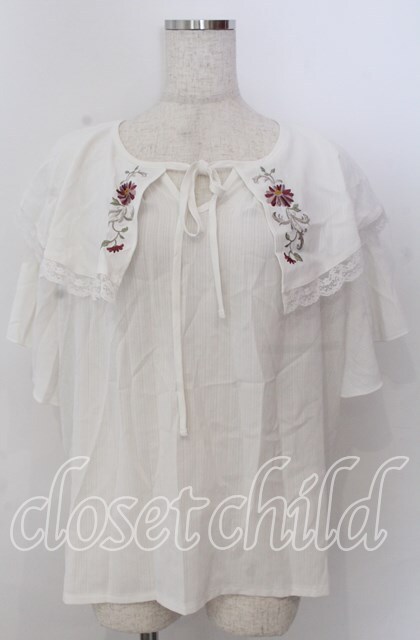 axes femme / 刺繍入ケープブラウス オフ O-25-10-30-1098-AX-BL-IG-OS