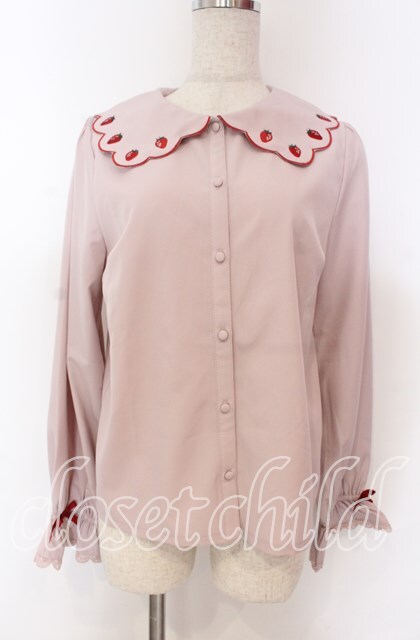 axes femme kawaii / スカラップ苺刺繍ブラウス M ピンク O-25-10-30-1029-AX-BL-OW-OS [2100080000062939-O-25-10-30-1029-AX-BL-OW-OS]