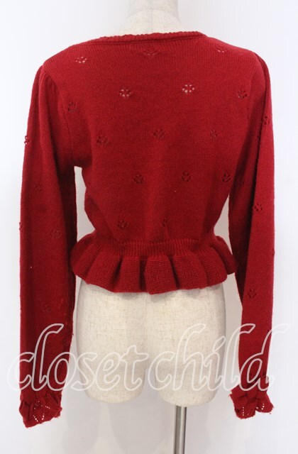 axes femme kawaii / 苺の編みぐるみニットカーデ M アカ O-25-10-30-1035-AX-TO-OW-OS