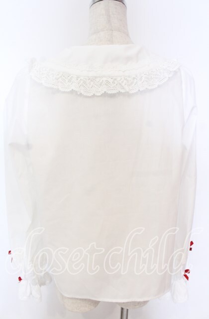 axes femme kawaii / トーションレース丸襟ブラウス M シロ×アカ O-25-10-30-1036-AX-BL-OW-OS [2100080000062949-O-25-10-30-1036-AX-BL-OW-OS]
