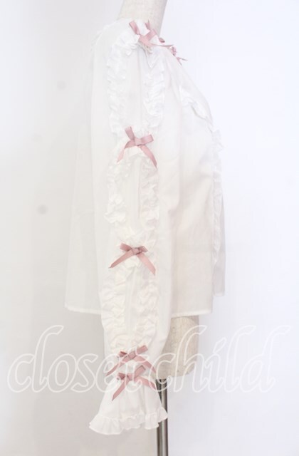 Chalmiere / フリルブラウス M シロ×ピンク O-25-10-30-1022-LO-BL-OW-OS