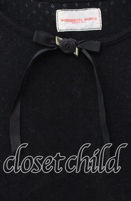 WONDERFUL WORLD / 巻き薔薇リボンタンクトップ  クロ O-25-10-31-028-LO-TO-IG-OS