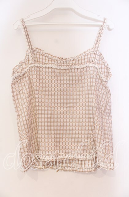 PINK HOUSE / ドビー刺繍チェックキャミソール ベージュ×シロ O-25-10-31-065-LO-TO-IG-OS [2110060000000515-O-25-10-31-065-LO-TO-IG-OS]