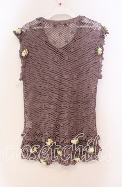 WONDERFUL WORLD / フラワーモチーフ鍵編みベスト  パープル O-25-10-31-012-LO-TO-IG-OS