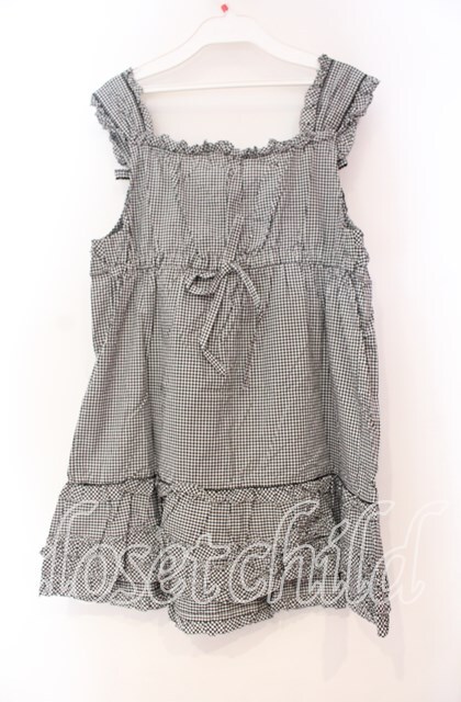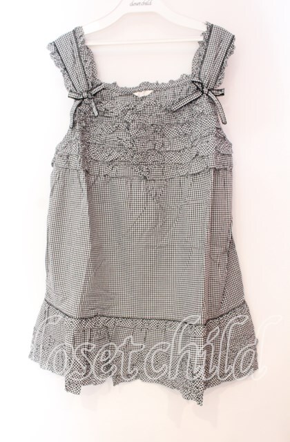 PINK HOUSE / ギンガムチェックフリルノースリーブブラウス クロ O-25-10-31-064-LO-BL-IG-OS [2110060000000512-O-25-10-31-064-LO-BL-IG-OS]