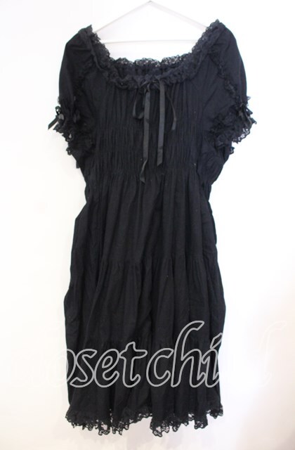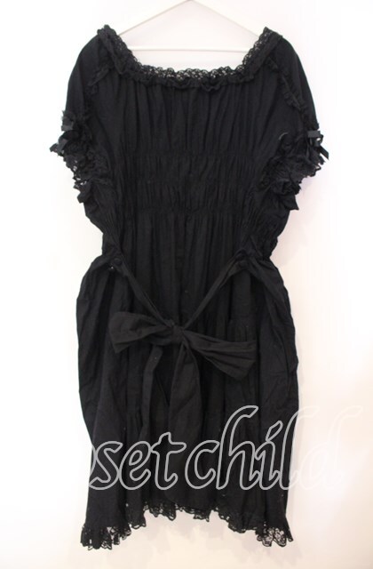 metamorphose / シャーリングハイウエストワンピース (綿混ラッセルレース)【お直しあり】  クロ O-25-10-31-035-ME-OP-IG-OS