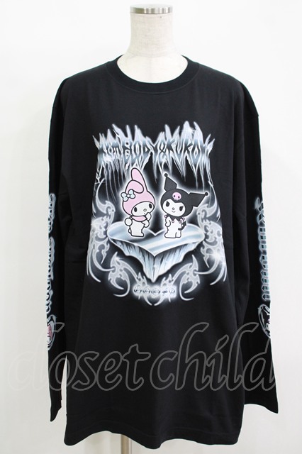 QOOZA / マイメロディ&クロミコラボ L/S TEE ブラック H-25-11-08-065-PU-TO-KB-ZH