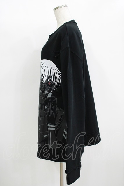 QOOZA / 東京喰種×QOOZA金木研 ダメージスウェット ブラック H-25-11-08-047-PU-TO-KB-ZH
