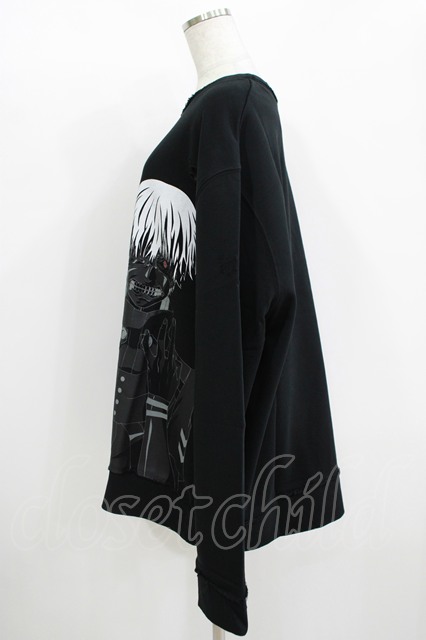 QOOZA / 東京喰種×QOOZA金木研 ダメージスウェット ブラック H-25-11-08-048-PU-TO-KB-ZH