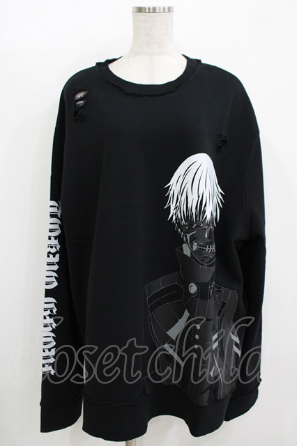 QOOZA / 東京喰種×QOOZA金木研 ダメージスウェット ブラック H-25-11-08-052-PU-TO-KB-ZH