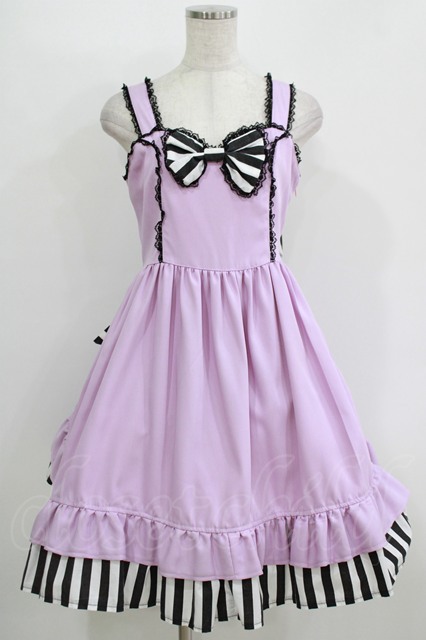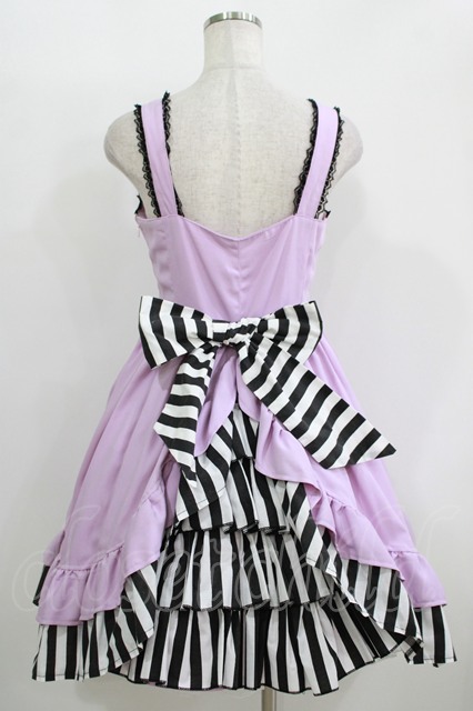 Dangerous nude / ストライプバッスルジャンパースカート ラベンダー H-25-11-08-002-PU-OP-KB-ZH