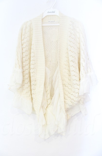 axes femme / ローズ編みシフォンフリルドルマンカーディガン  アイボリー O-25-10-31-3005-AX-TO-IG-OS