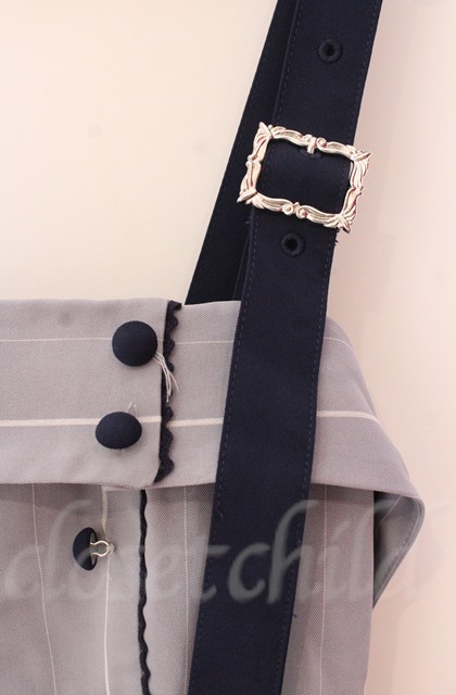 axes femme / バックリボンストライプジャンパースカート  ブルー O-25-10-31-3007-AX-OP-IG-OS