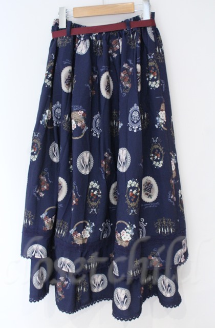 axes femme / アンティークフルーツ柄スカート  ネイビー O-25-10-31-3044-AX-SK-IG-OS