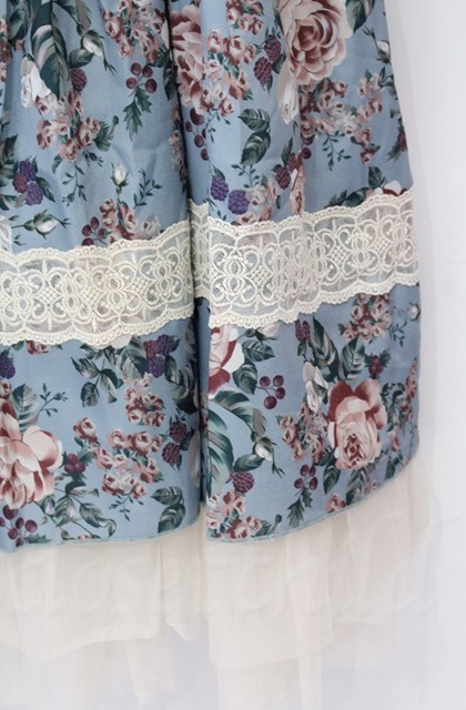 axes femme / ホーリーローズ柄フリルスカート  ミント O-25-10-31-3050-AX-SK-IG-OS
