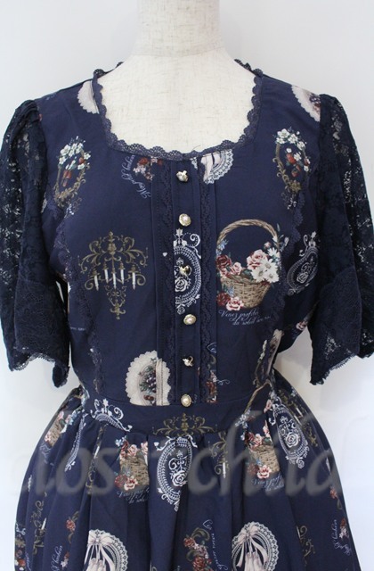 axes femme / アンティークフルーツ柄ワンピース  ネイビー O-25-10-31-3011-AX-OP-IG-OS